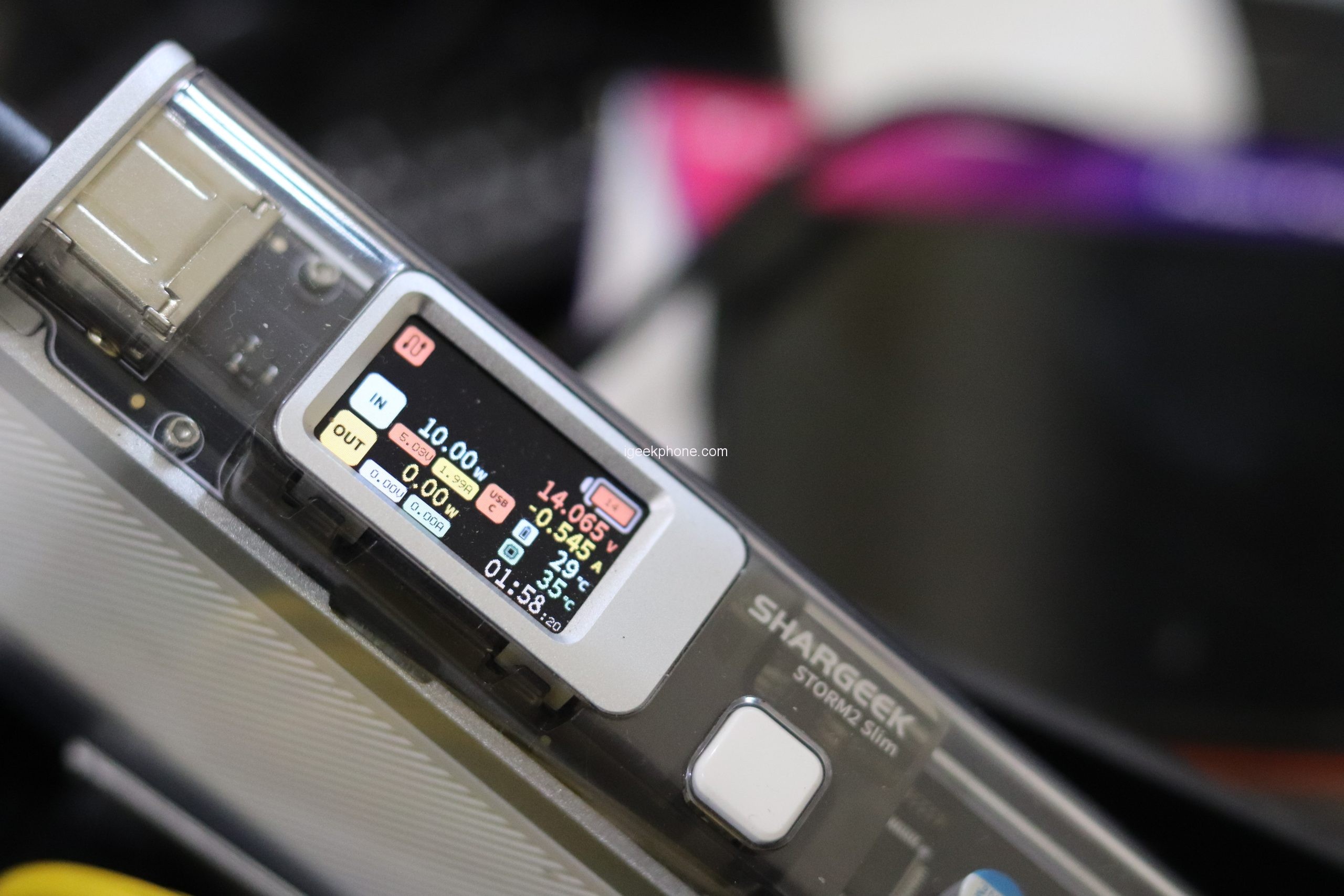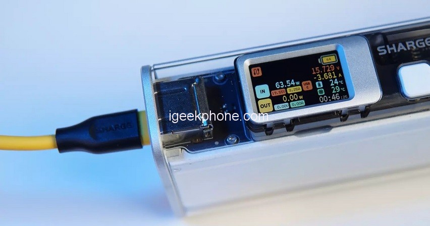 The Shargeek Storm 2 Slim is embedded with a 235*140 IPS color screen, through which you can see information such as charging wattage, current, voltage, temperature, etc.