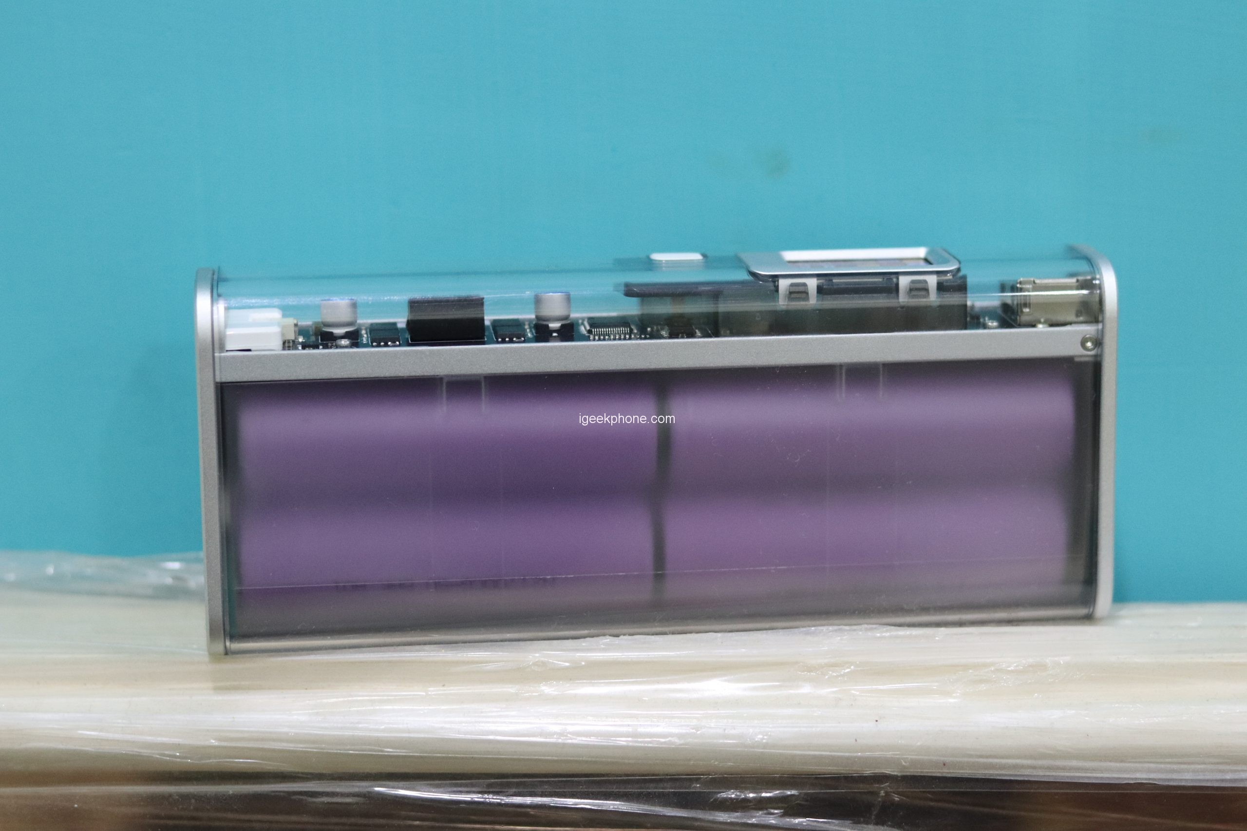 Through the inside of the PC case, we can clearly see that the electronic components of the power bank are arranged on the circuit board. I have to say that as a pure straight man, it is difficult to resist such a technological design.