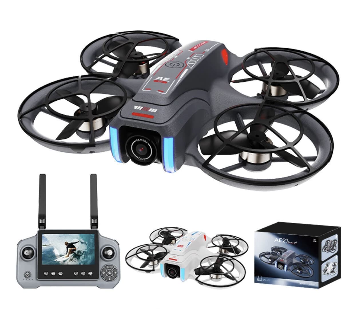 The SHRC AE21 comes equipped with WiFi FPV technology, allowing users to view a live video feed from the drone’s camera in real-time. Whether you’re flying indoors or outdoors, this feature gives you an immersive, first-person perspective of the drone’s flight, making it feel like you’re the one flying through the sky. The 4.3-inch LCD screen on the controller offers crisp and clear visuals, so you can enjoy a smooth and uninterrupted live feed.