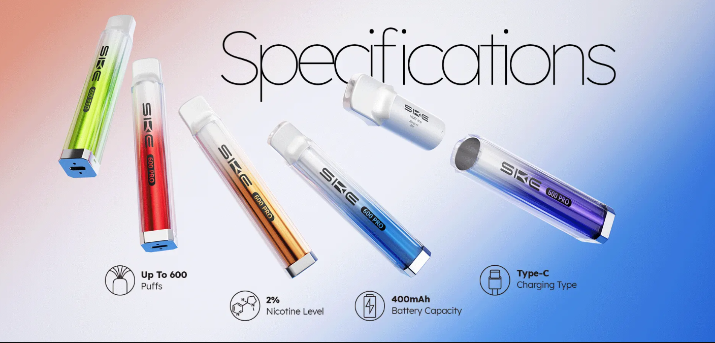 This says goodbye to refill and coil and cleaning tank. SKE 600 Pro comes pre-filled with 2ml of 20mg nic salt e-liquid in a range of rotating colors. From icy menthol to fruity blends, the mesh coil inside each pod guarantees that every puff is packed with crisp, consistent flavor — no “break-in” puffs needed.