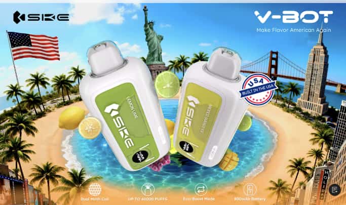 SKE, an e-cigarette brand under Shenzhen SKE Technology Co., LTD., has launched a new e-cigarette, SKE V-BOT, on its official website. The official website describes this product as “Built in America, Tastes American”. And it claims to offer up to 40,000 suction times.