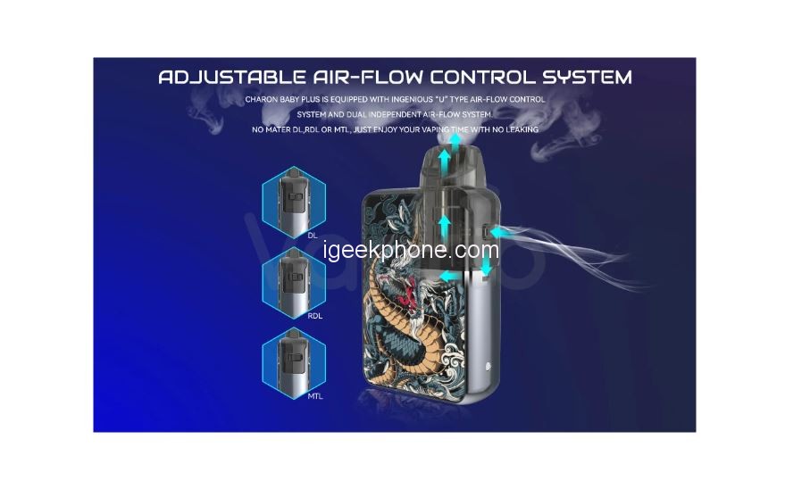 The Smoant Charon Baby Plus, like other systems, comes with its very own pod, which is a plastic tank with a mouthpiece and a capacity of up to 3.5 milliliters. The case is loaded up with e-fluid through the side silicone cover and a warming head is embedded into it. Additionally, there is an airflow control that enables you to adjust the draw’s tightness in accordance with your requirements and the heating head that is being used.