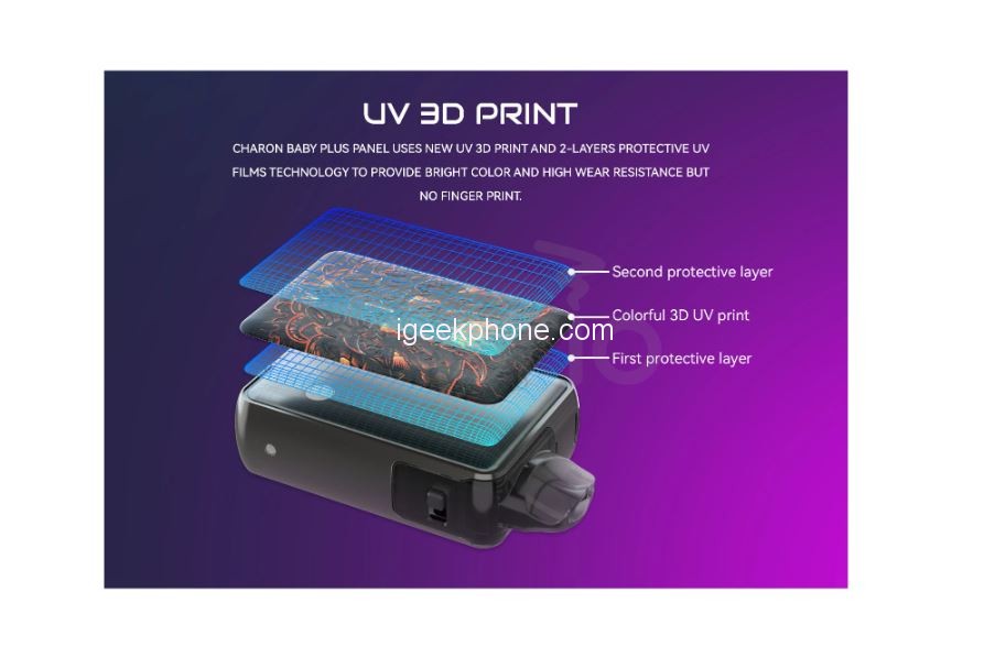 The Charon Baby Plus has a smart chip inside its zinc alloy body that can determine the ideal power and determine the heating head’s resistance. Additionally, there are practical safeguards against overheating, overcharging, over-discharging, and short circuits.