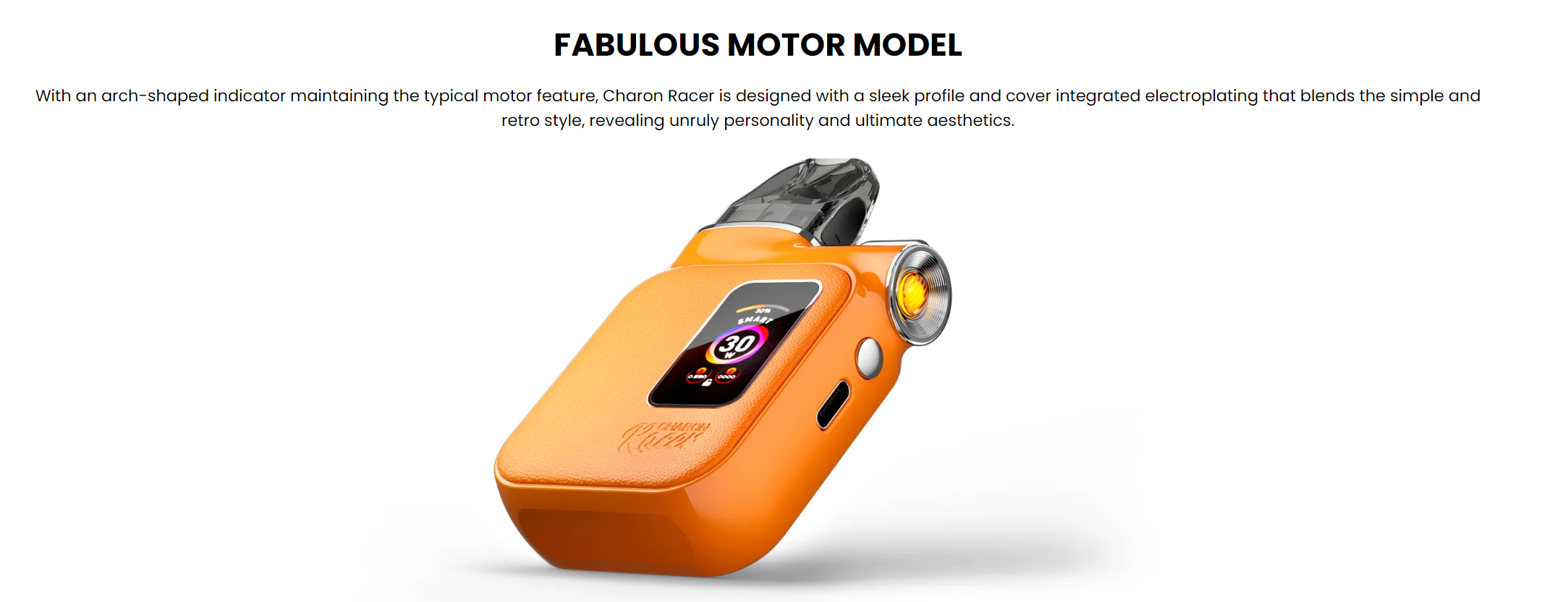 The Charon Racer-A, on the other hand, draws inspiration from motorcycle culture, blending classic motorcycle elements with a vintage style. It features a sleek profile with electroplated covers that exude a sense of freedom and individuality. The arch-shaped indicator on the device maintains the typical motor feature, enhancing its unique design. The Charon Racer-A is slightly larger, with dimensions of 86mm in height, 51mm in width, and 20mm in thickness, and it comes with a practical lanyard for easy carrying.