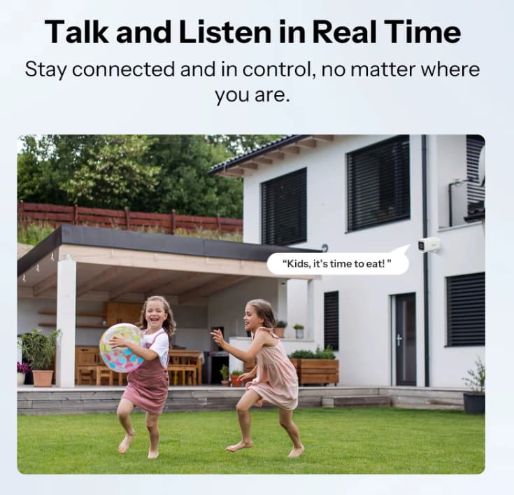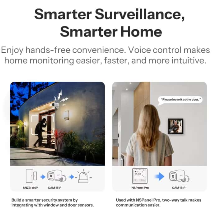 Communication is simple and immediate thanks to the built-in microphone and speaker. The SONOFF CAM-B1P supports two-way audio, allowing you to listen in or speak to visitors — a useful feature for greeting guests or deterring unwanted intruders.