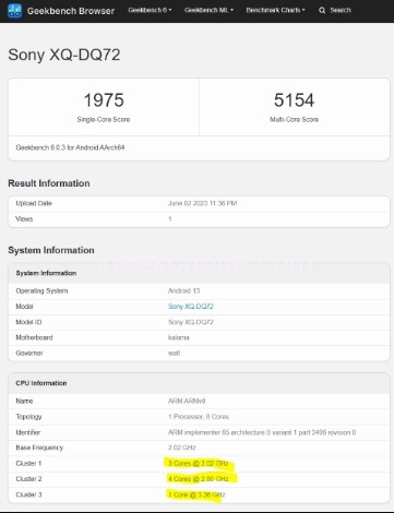 The Geekbench information indicated that the processor frequency of the XQ-DQ72 variant was an impressive 3.36GHz. This discovery has led to speculation that Sony might be working on a high-frequency version of the Snapdragon 8 Gen 2, tailored specifically for the Xperia 1 V.