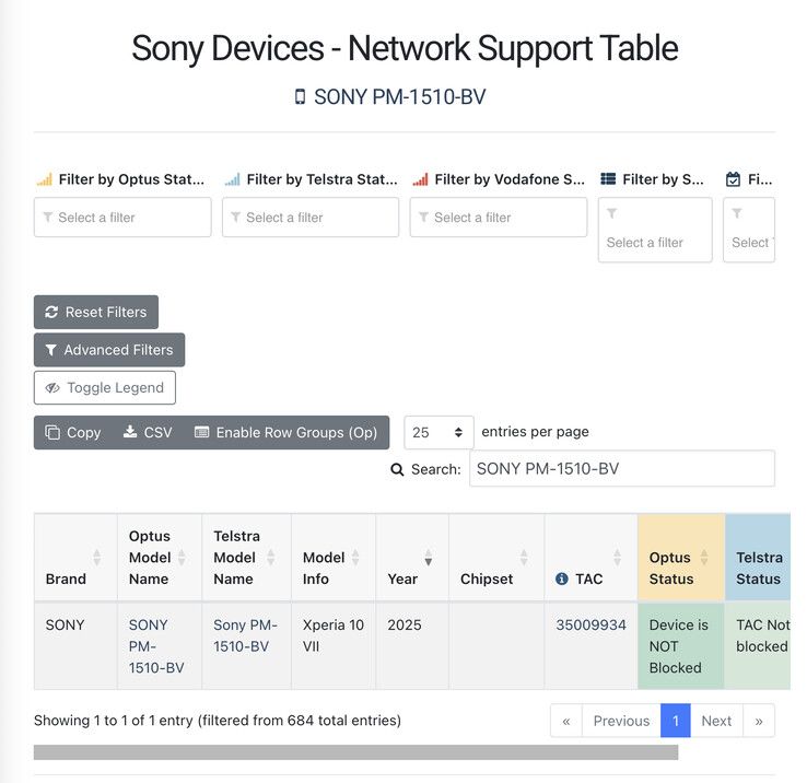 Recently, the Australian website “Is This Phone Blocked?” The detailed information of Xperia 10 VII has been disclosed. Among them, the OEM ID “PM-1510-BV” is clearly marked as the model of Xperia 10 VII, while “PM-1513-BV” corresponds to the unlocked version model “XQ-FE44” in Japan.