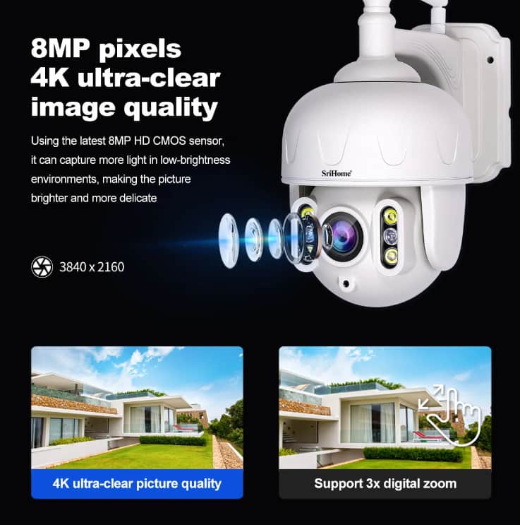 Key Features of the Srihome SH028 8MP 4K Outdoor Security Camera: