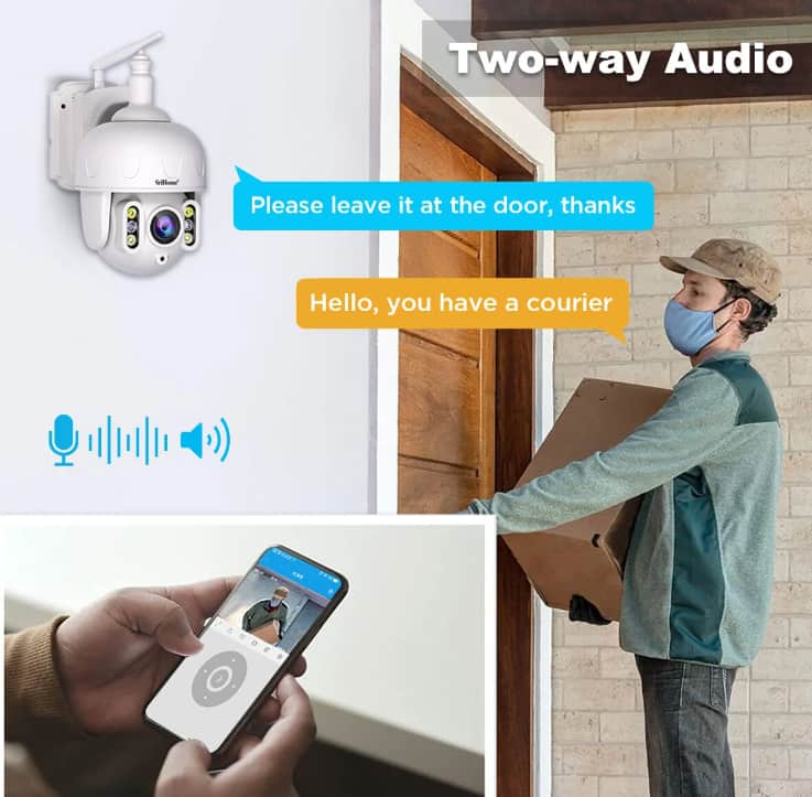 The two-way audio feature allows you to listen and speak through the camera, giving you the ability to communicate with visitors, delivery personnel, or intruders. This feature is perfect for answering the door remotely, speaking to guests, or warning off potential trespassers, all from the convenience of your smartphone or tablet.