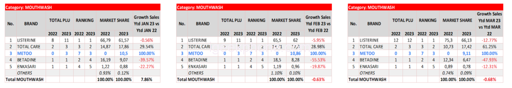 The success was facilitated by identifying and targeting the demand for mouthwash among Indonesia’s Muslim population, where oral hygiene is essential due to religious practices. Metoo also differentiated itself with various stories of a 1.5 USD Mouthwash that made 130 million Indonesians smileGuide flavors and a “probiotics” concept, appealing to young consumers willing to spend. Despite being priced higher than competitors, Metoo achieved considerable sales through online and offline strategies.