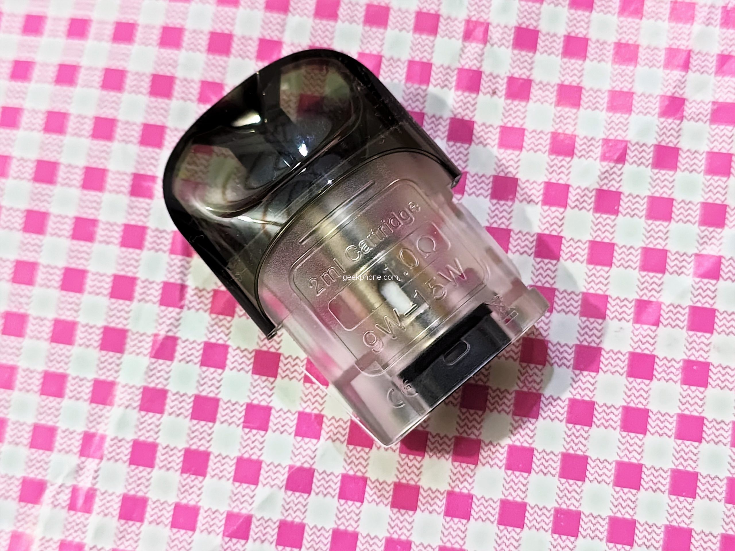 In order to fill the cartridge, it is necessary to remove it from the battery pack; open a small silicone plug on the side surface, and pour in 2 ml of liquid. It is advisable to use bottles with a thin metal spout, as the filling hole is quite small.
