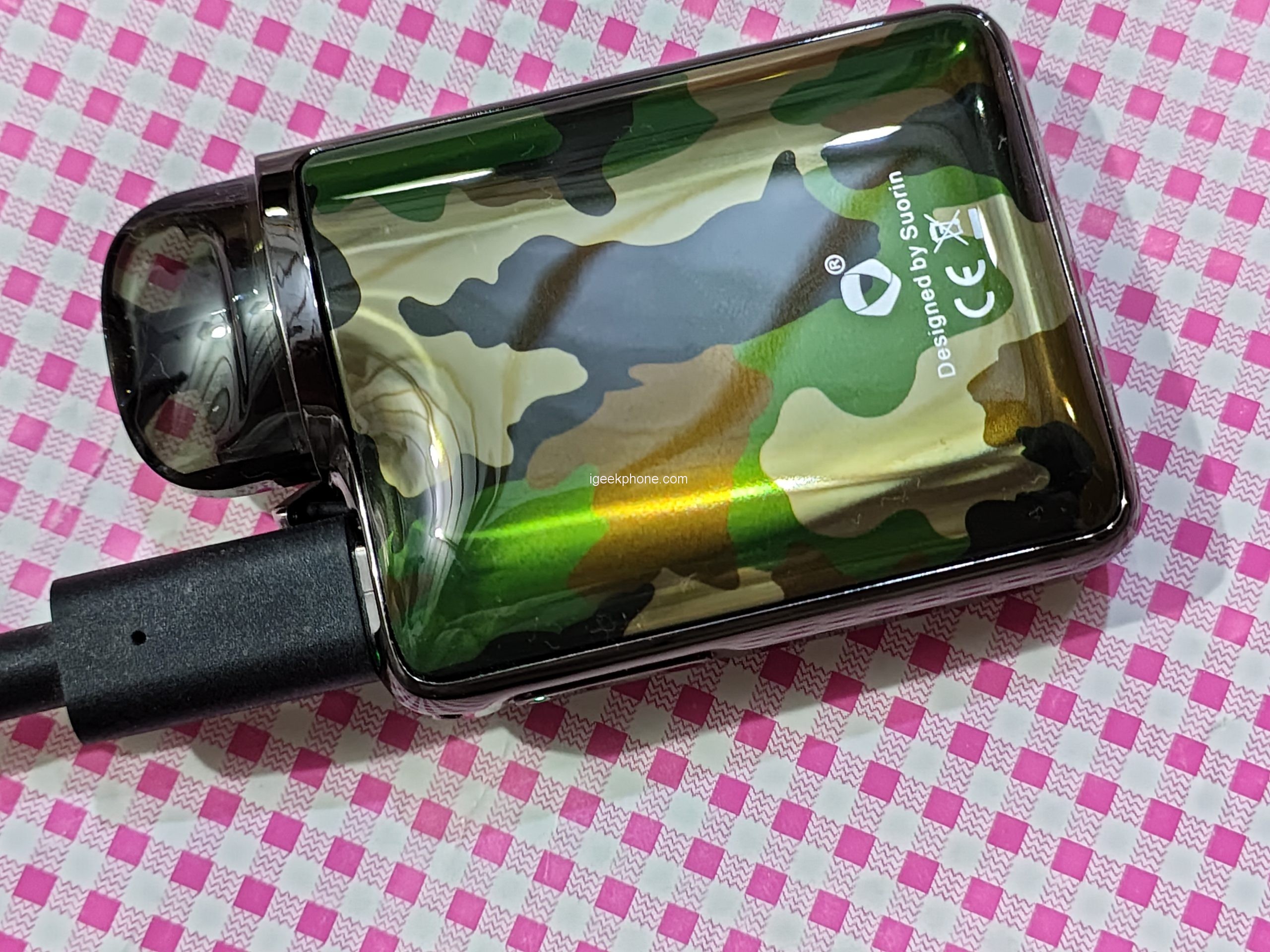 Suorin ACE 15W Pod runs on a constant power of 15 watts (as the name implies), which is provided by a built-in 1000 mAh battery, which is a good indicator for such a compact device. The battery is charged with a current of 1A using the USB Type-C connector located on the top of the device.