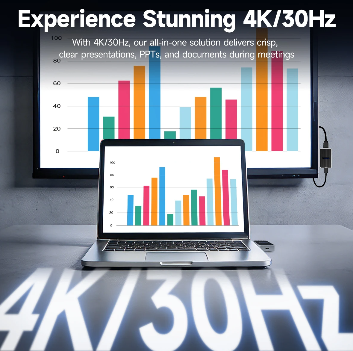 The device supports Type-C DP output with up to 4K resolution at 30Hz, along with 2K at 60Hz and 1080p at 60Hz. This flexibility means you can choose the best resolution depending on your use case—higher resolution for media playback or smoother frame rates for presentations and productivity tasks.
