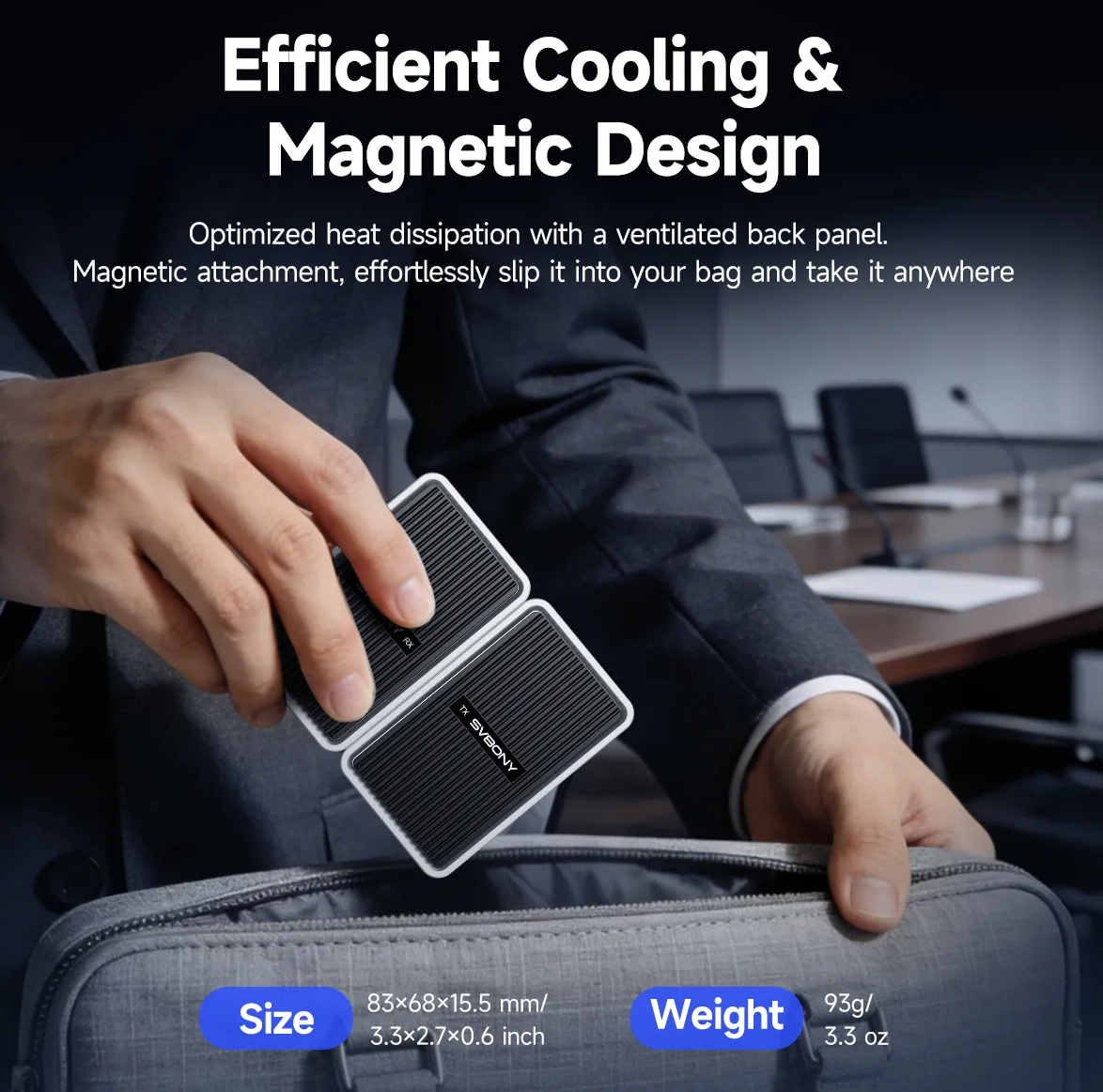 The device is compact, measuring just 83×68×15.5mm and weighing 93g, making it easy to carry in a bag or even a pocket. The built-in magnetic design adds convenience for storage and setup, while also helping with heat dissipation during longer usage sessions.