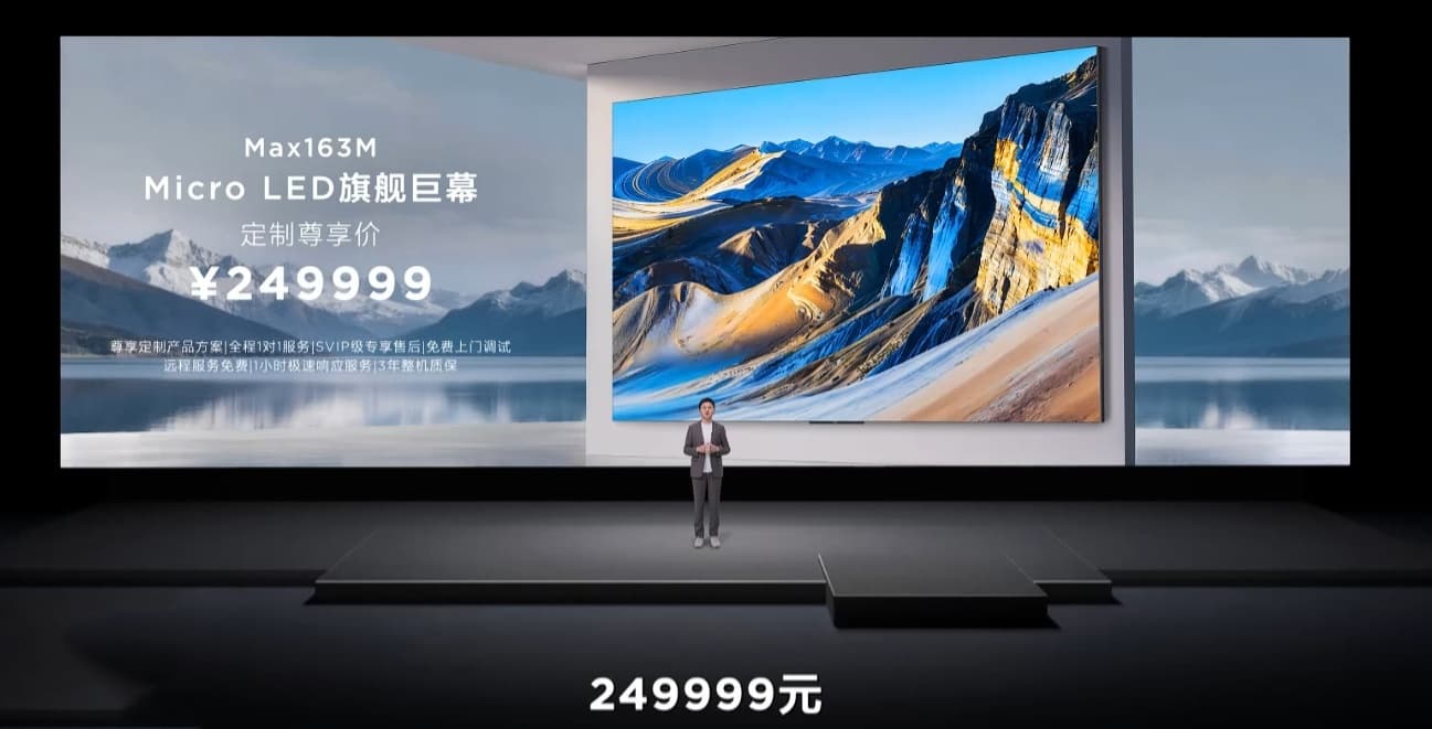 Igeekphone reported on March 17th that TCL has launched two new 163-inch Micro LED ultra-large screen TV models today – TCL Max163M and TCL Max163M Pro. The prices are 249,999 yuan and 349,999 yuan respectively.