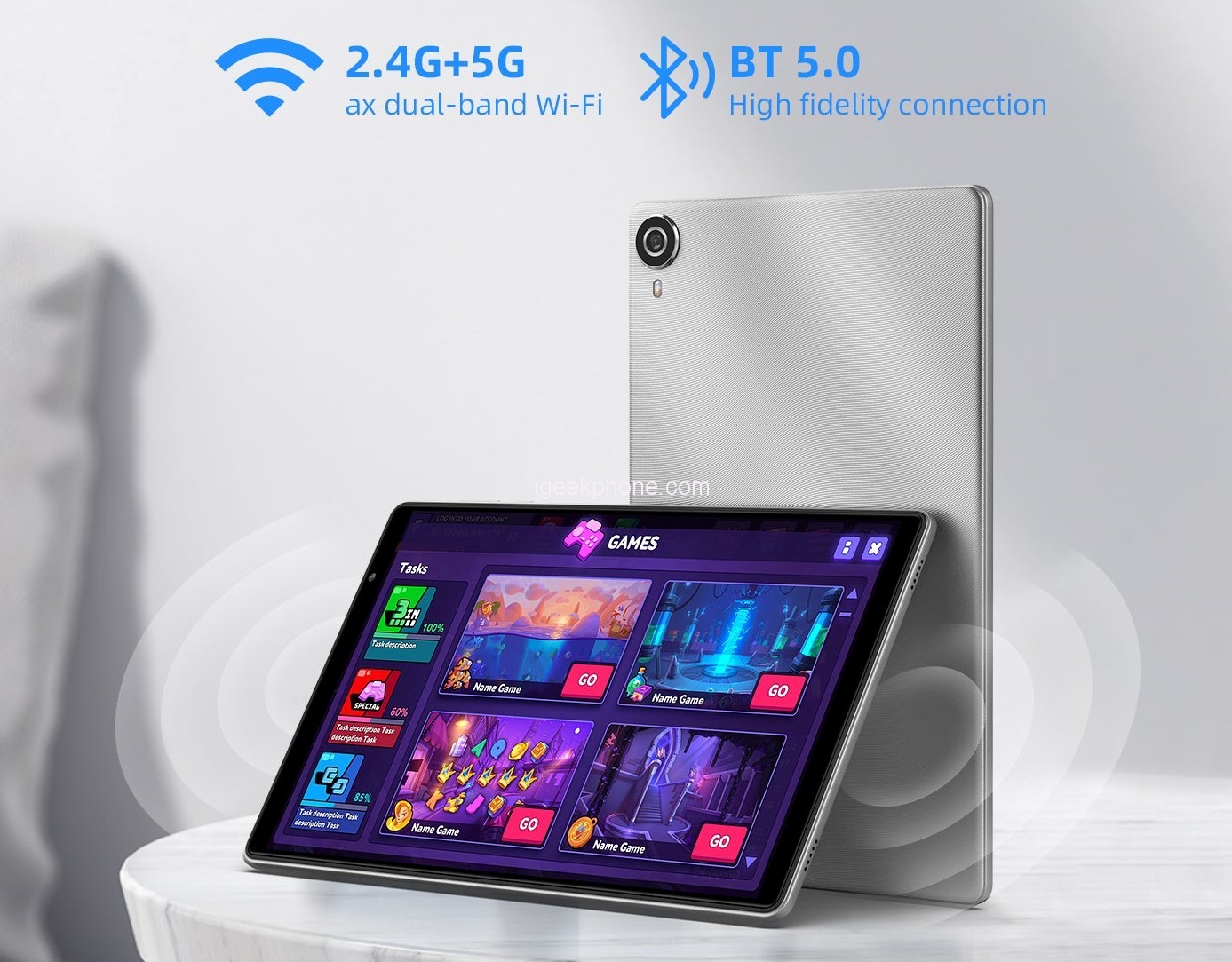 Moreover, Android 12 has powerful privacy features to keep your information secure. The tablet features a convenient Type-C charging interface that is compatible with most charging equipment. The Teclast P25T supports WIFI 802.11 a/b/g/n/ac/ax WIFI6(2.4GHz/5GHz) and Bluetooth 5.0. Its camera comes with a 2.0MP front and 5.0MP rear. The tablet’s battery capacity is 5000mAh, allowing you to use it for extended periods.