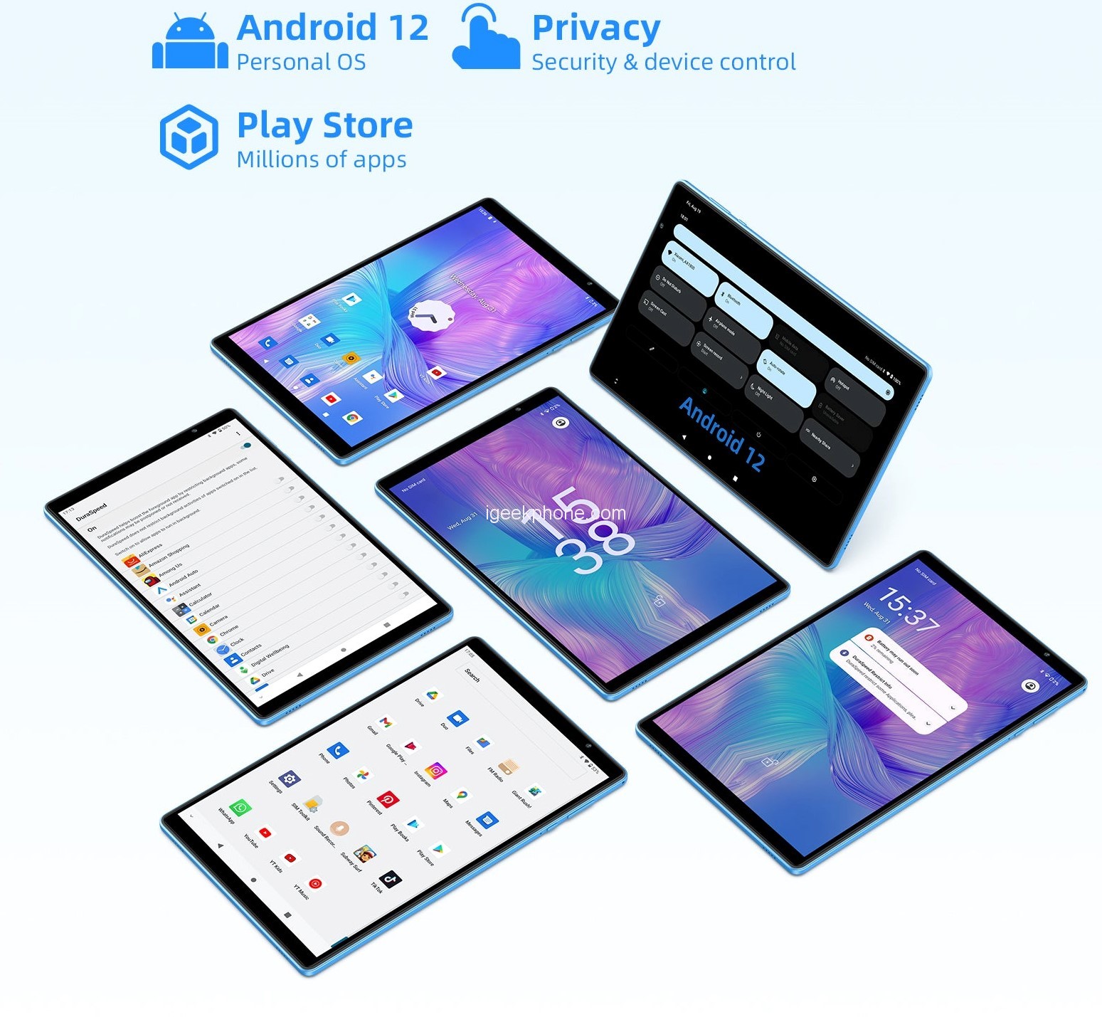 The Teclast P25T is a powerful tablet equipped with an Allwinner A133 64bit 4-core Processor, which provides impressive performance while consuming less power. This tablet is designed to optimize performance based on your habits, thanks to its AI algorithms. With 4GB RAM and 64GB storage, you can store all your photos, videos, and games. Additionally, you can expand the storage with a Micro SD card. The Teclast P25T runs on Android 12, which offers an intuitive UI design and optimized system logic, providing a smoother experience.