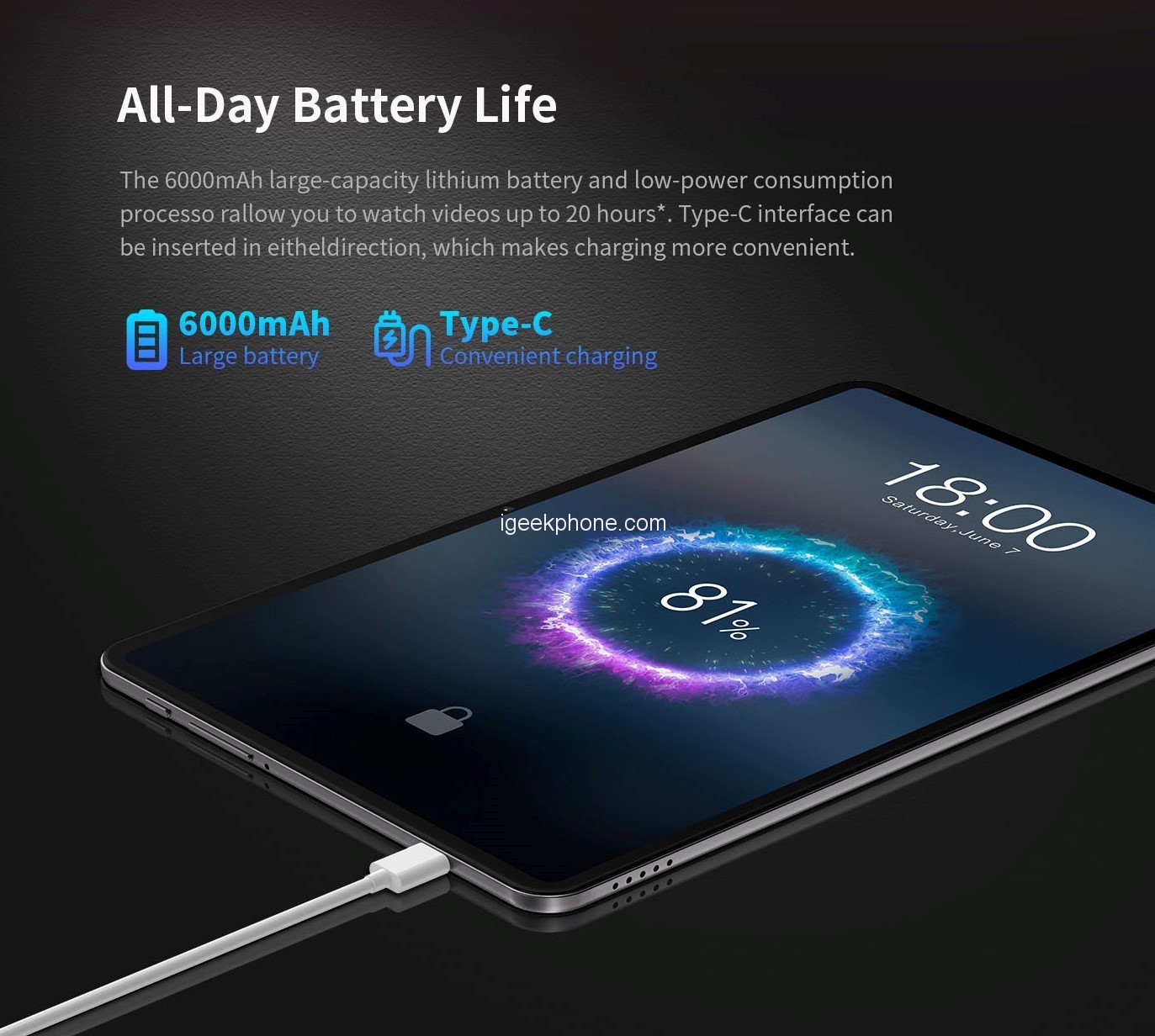 Another noteworthy feature of the T40S is its robust battery life. The 3.85V/6000mAh battery provides long-lasting usage, allowing users to enjoy their favorite content, work on important tasks, or browse the internet for extended periods without worrying about running out of power.