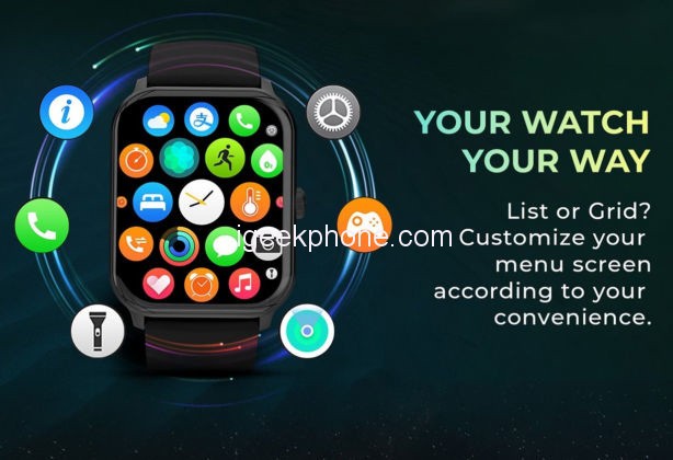 The Marv Neo has been designed to be highly durable and is rated IP68 for dust and water resistance. It comes with over 60 different sports modes, making it a perfect companion for fitness enthusiasts. The UI interface is also customizable, allowing users to choose between a list style or grid style for navigation.