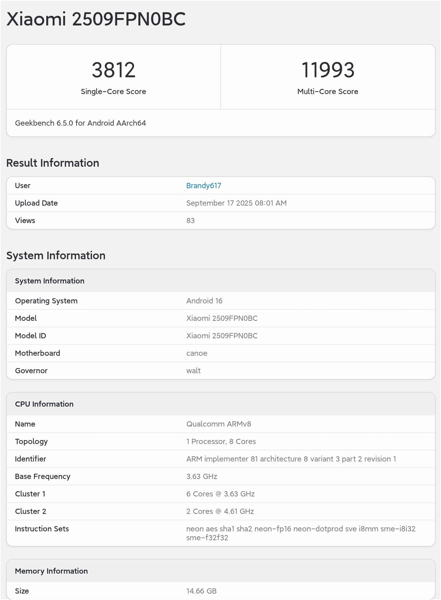 Igeekphone News, September 17th: According to @Digital Chat Station, the latest benchmark scores of the Xiaomi 17 series phones have appeared on Geekbench.