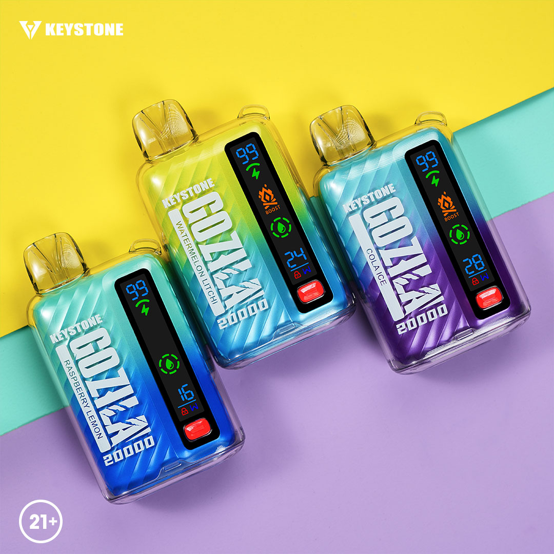 Beneath its sleek exterior, the GOZILA 20000 boasts a 1.85″ screen, offering users an intuitive interface to monitor and adjust settings, ensuring the optimal vaping experience tailored to individual preferences. The 900mAh battery capacity combined with a maximum output of 28W guarantees that the banana essence is expressed in full, vibrant notes, providing a satisfying and long-lasting vaping journey. The attention to detail in blending technology with the natural, comforting flavor of banana sets the GOZILA 20000 apart, making it a standout choice for those seeking both performance and a taste that transports them to lush, fruity bliss.