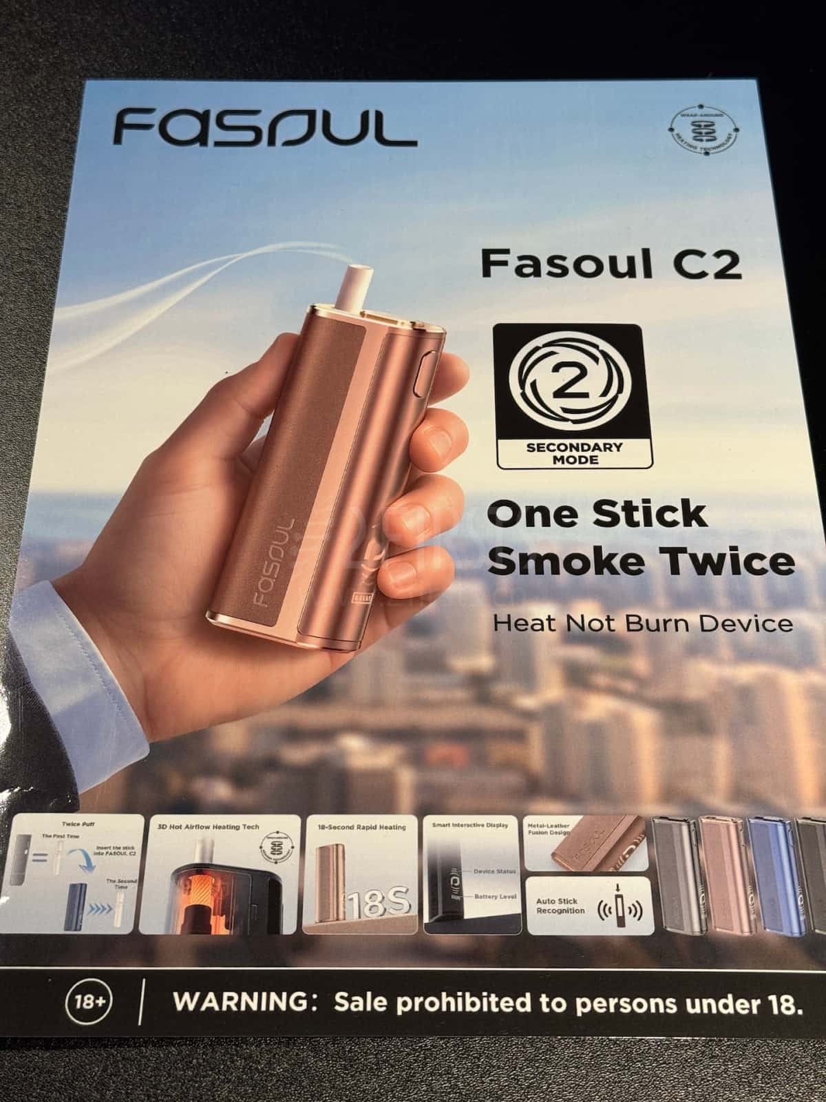 At the Geek Bar booth, 2Firsts saw two Fasoul heating non-burning smoking devices displayed along with the other products on the booth. The two models on display were Fasoul Q1 Pro and Fasoul C2.