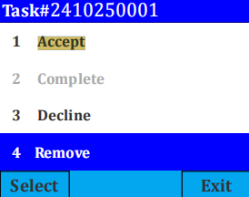 Process: With the ticket open, they press the Menu key and select “Complete” from the action menu. This action finalizes the task status.