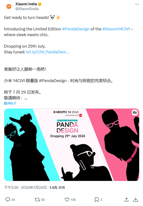 The Mi 14 Civi PandaDesign Limited Edition has been announced to be released in India on July 29.