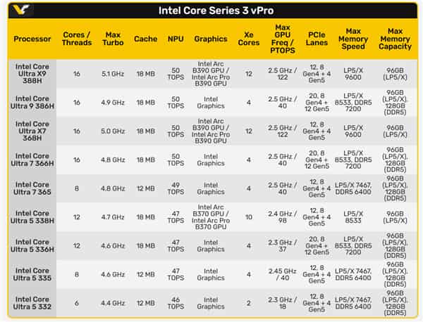 Some high-end models are equipped with Intel Arc B390 or Arc Pro B390 graphics cards (with 12 Xe cores), while the mid-to-low-end models are equipped with 4-core or 2-core Intel integrated graphics cards.