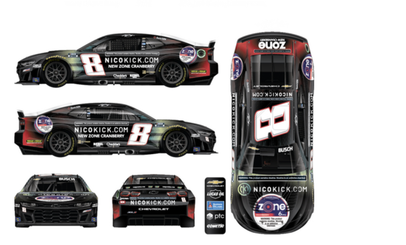 On the day of the race, Kyle Busch will be wearing a custom driver’s outfit featuring both teams’ logos and cranberry elements. The 8th race team’s maintenance team will be wearing fire-resistant suits that showcase elements such as Jalapeño Lime, Wintergreen and Dragonfruit from the Zone flavors.