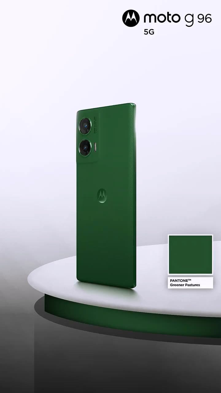 In terms of color, the MOTOROLA G96 comes in four colors: Cattleya Orchid, Dresden Blue, Greener Pastures and Ashleigh Blue. The back of the device is made of plain leather.