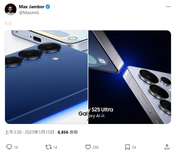 Igeekphone news on January 15, before Samsung’s official release on January 22, source Max Jambor once again shared the official promotional picture of the Galaxy S25 series mobile phone, You can see the Galaxy S25 in navy blue, the S25 + in ice blue and the S25 Ultra in titanium white.