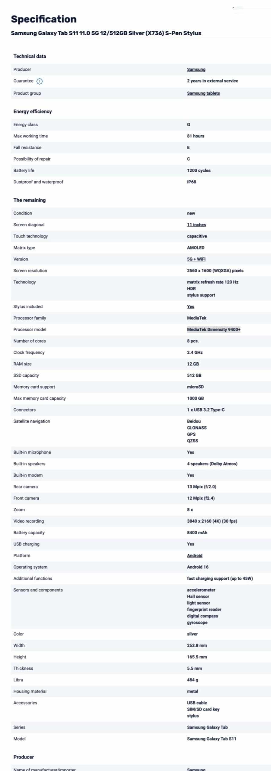 The Specifications of Samsung Galaxy Tab S11 tablet have been exposed: Dimensity 9400+ chip