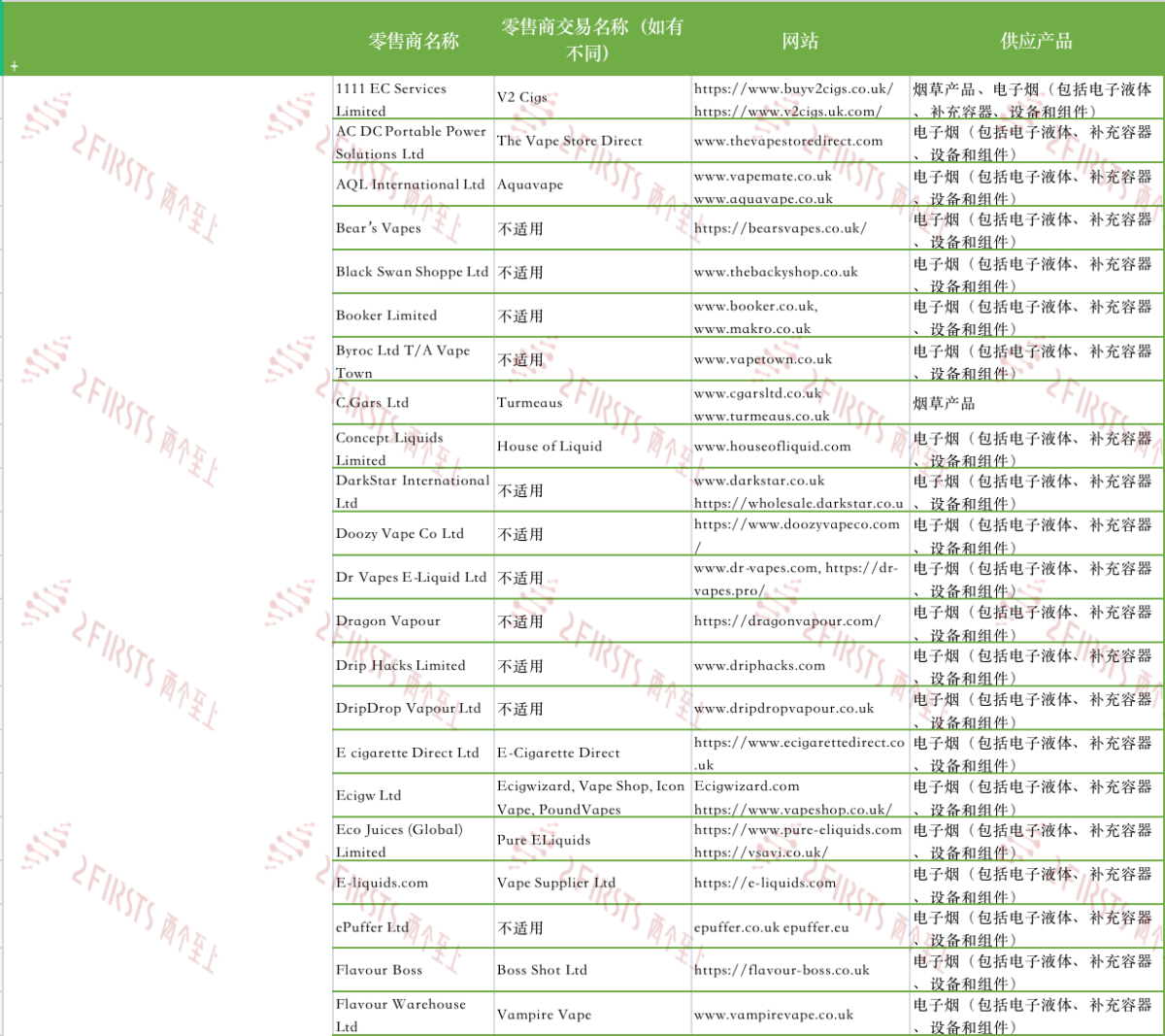 According to the official website of the British government on July 9, the British government published a list of registered retailers for cross-border remote sales of electronic cigarettes and tobacco products on its official website.