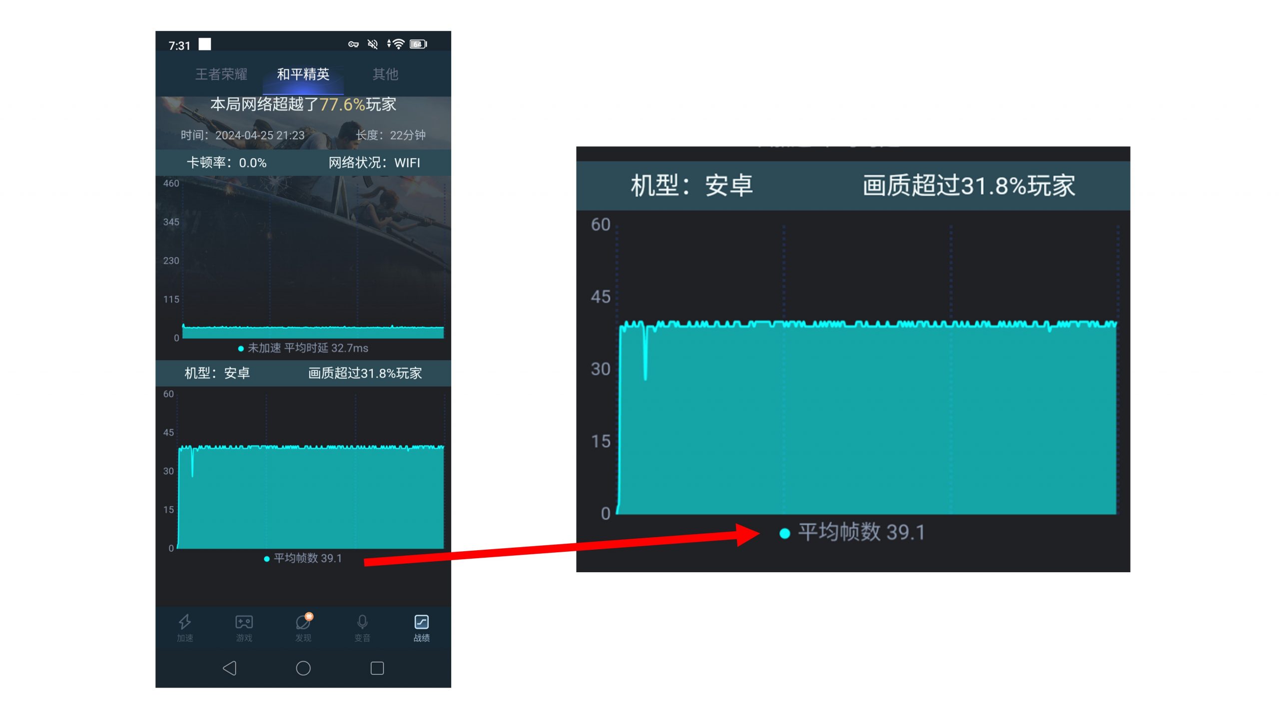 Similarly, with another popular game, “Peacekeeper Elite,” set to balanced graphics settings, the UMIDIGI G9 5G performs admirably with an average frame rate reaching 39.1, accompanied by minimal frame rate fluctuations. This clearly demonstrates the exceptional capability of the UNISOC T765 chip in handling high-performance gaming tasks.