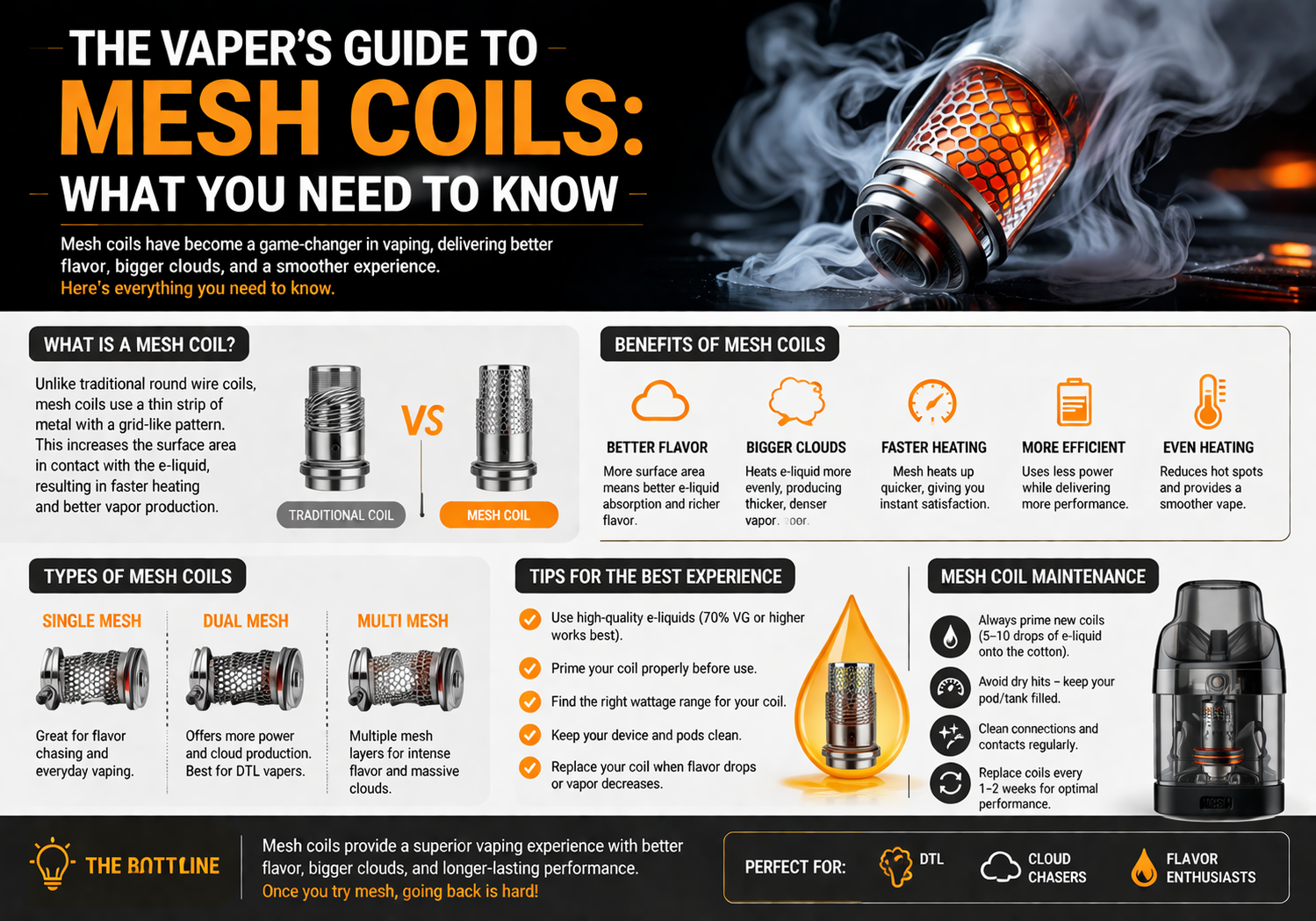 If you haven’t already tried mesh coils, they’re worth exploring — and once you do, you may find it hard to go back to traditional wire‑wrapped coils again.