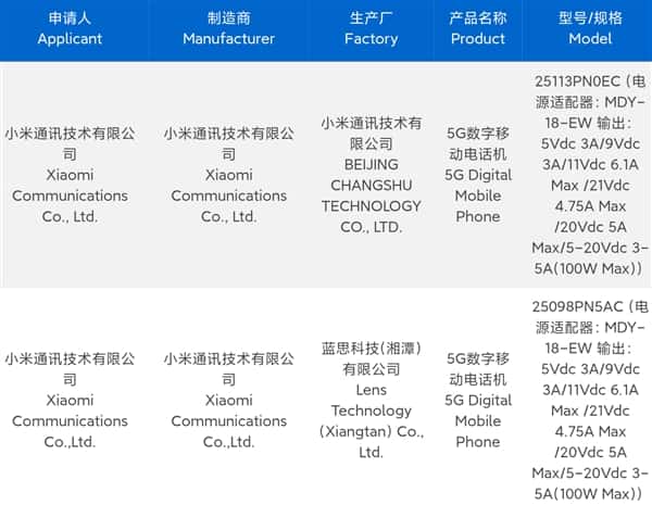 Igeekphone News on August 28th: Today, the Xiaomi 16 series has obtained 3C certification. A total of three models have been approved for network access this time, namely 25098PN5AC, 2509FPN0BC, and 25113PN0EC. All models are equipped with 100W wired flash charging as standard.