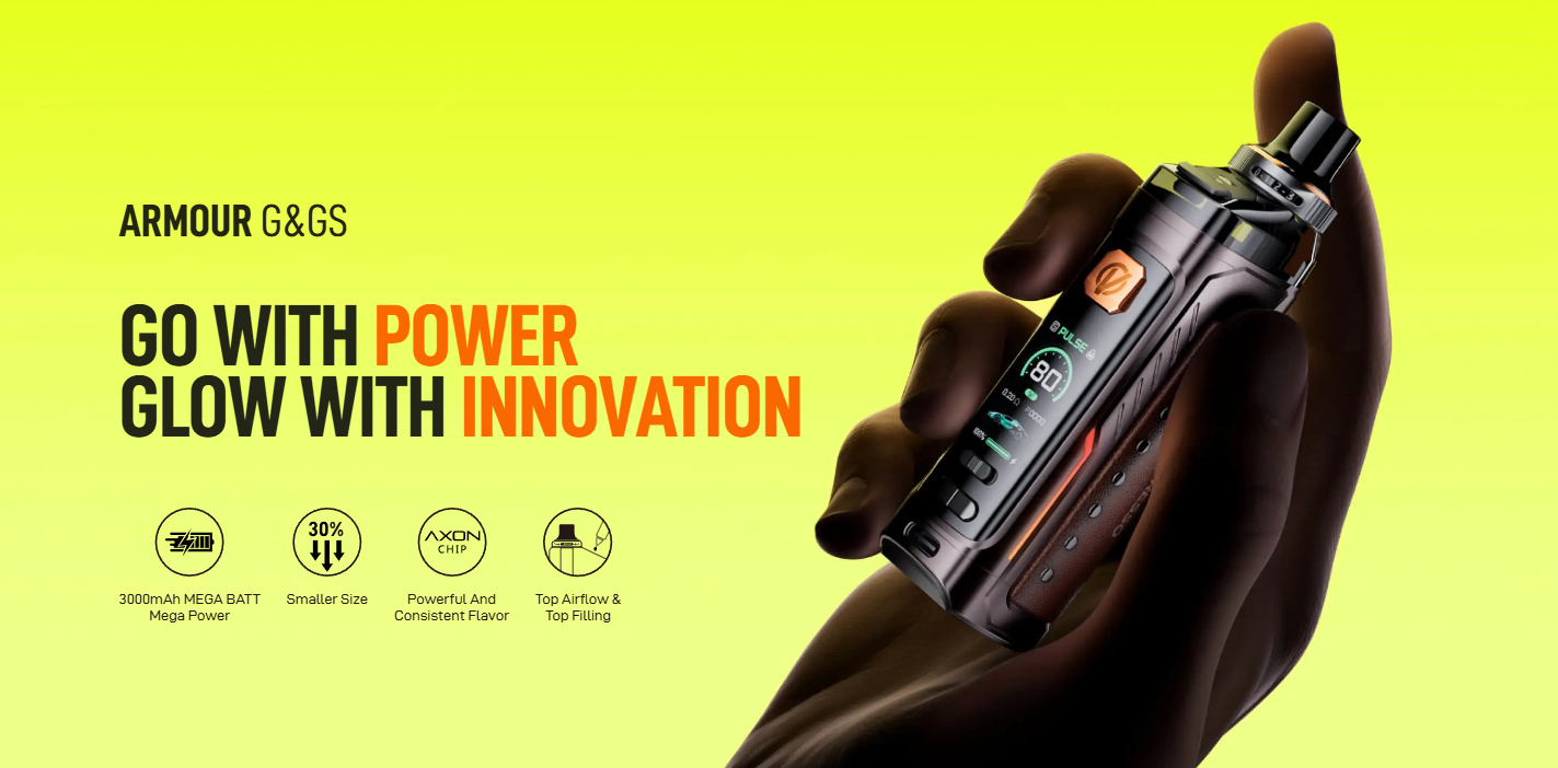 The Vaporesso ARMOUR G is a powerful and portable pod mod. Its 3000mAh Mega Batt delivers long-lasting power in a compact design. The device features a top airflow system for optimal flavor and reduced leakage, along with a user-friendly top-filling design. The ARMOUR G utilizes the latest Neo Pulse Mode and COREX technology, ensuring consistent flavor and powerful output throughout its battery life.