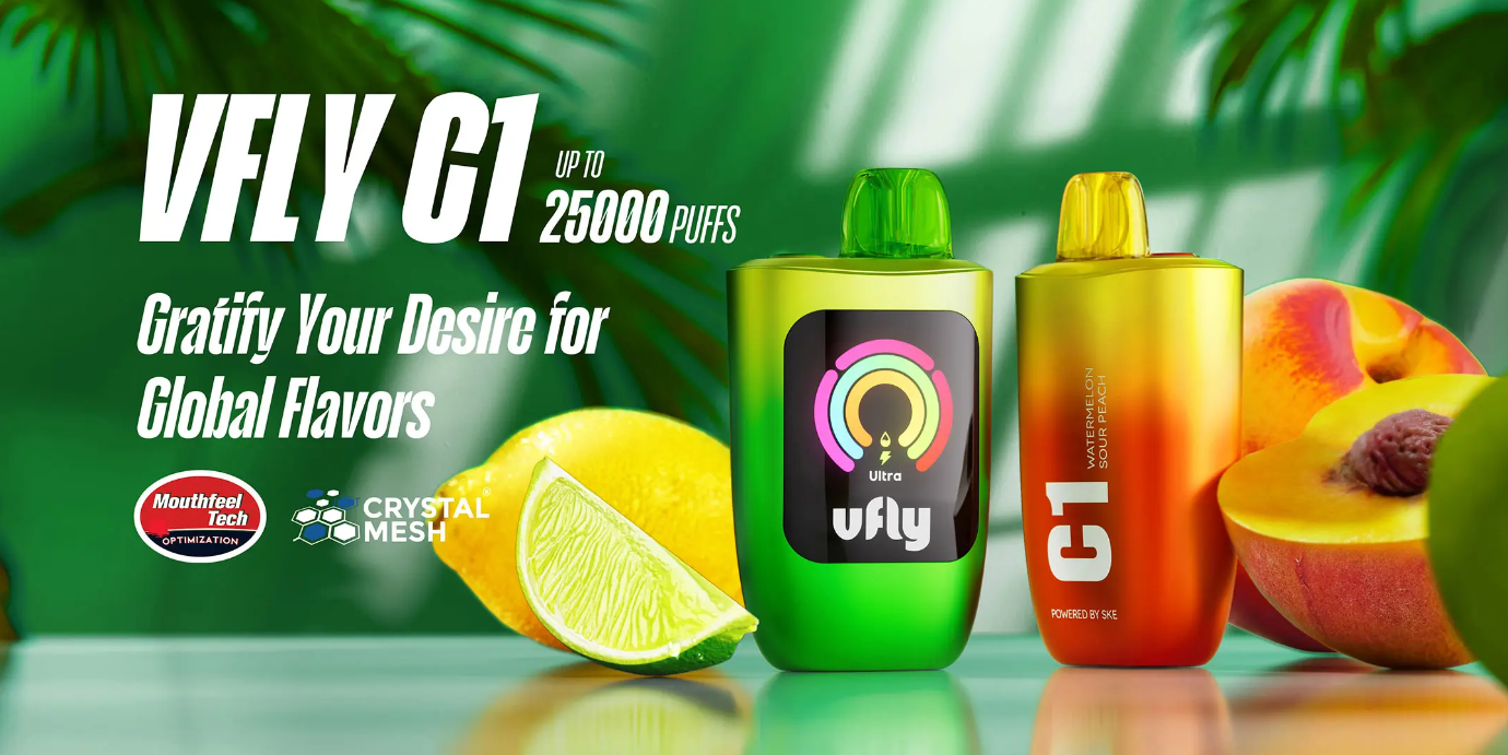 The VFLLY C1 is compact and lightweight, measuring 92.6mm x 50.4mm x 28.3mm and weighing only 80g. It features a 20ml e-juice capacity and supports 50mg nicotine salt e-juice. The device is draw-activated and offers a long-lasting 25,000 puff capacity (depending on the wattage setting). It comes with 10 different flavors and a smart HD display screen for easy customization. The device is powered by an internal 850mAh rechargeable battery and supports USB Type-C charging. It utilizes crystal dual mesh coils and offers adjustable wattage settings (10W, 14W, and 18W) for personalized vaping experiences.