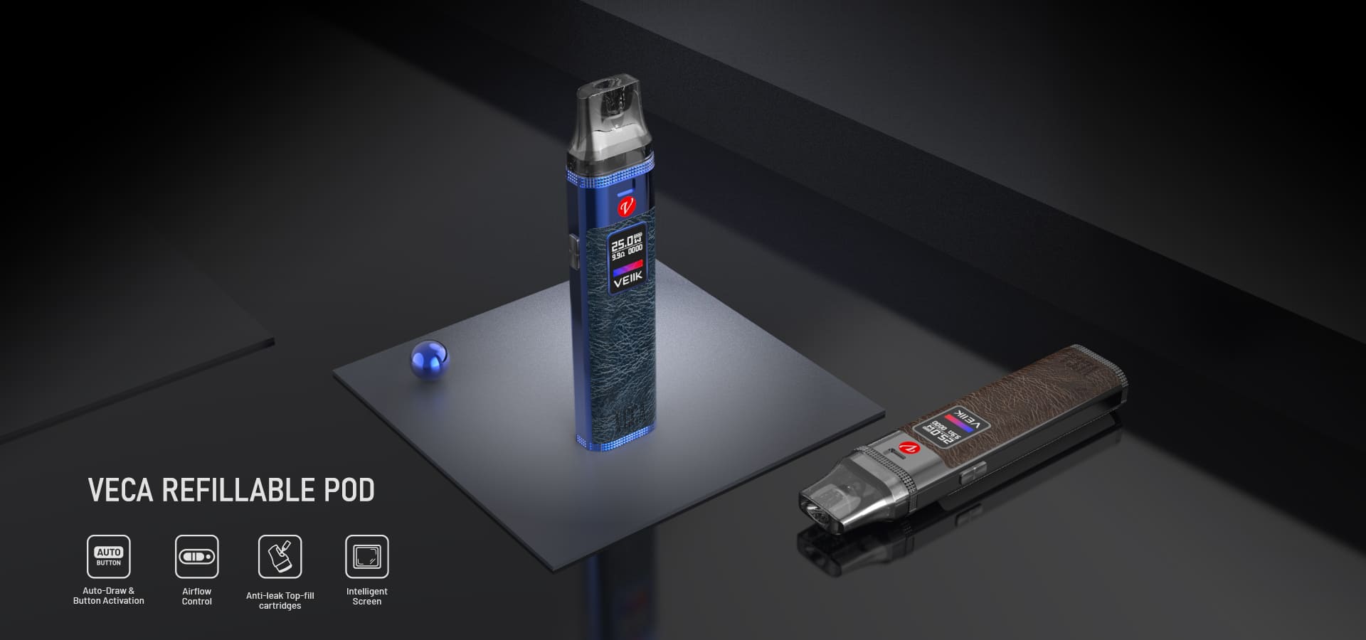 The VEIIK Vace Pod Kit is a compact and stylish vaping device designed for both new and experienced vapers. Its sleek aluminum alloy body and minimalist design make it easy to carry and use on the go. Powered by a built-in 700mAh battery, the Vace offers long-lasting performance and can be quickly charged via its Type-C port. The 2ml refillable pod system is easy to fill and uses a 1.0ohm mesh coil for smooth and flavorful vapor production.
