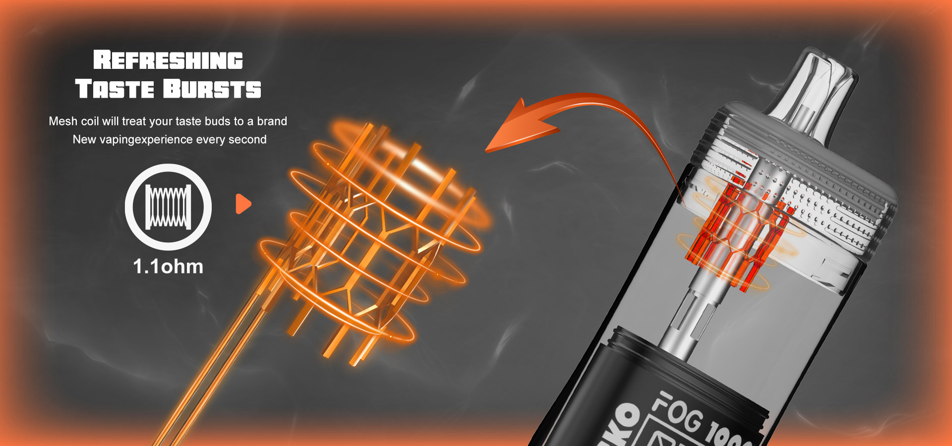 Equipped with a 500mAh rechargeable battery, the Micko Fog offers a substantial vaping experience. Its non-variable voltage and wattage, combined with a 1.1ohm mesh coil, ensure a reliable and flavorful session. The absence of a display maintains simplicity, catering to users of all levels.