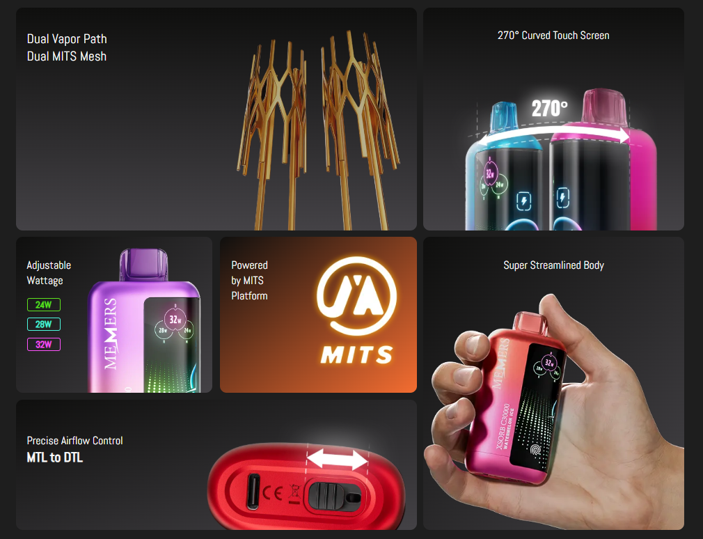 If you’re chasing massive clouds and intense flavors, the XSORB C30000 is your summer companion. This futuristic vape packs 24mL of e-liquid for 30,000 puffs, powered by an 850mAh battery with adjustable wattage (24W, 28W, or 32W). Its dual vapor path and MITS dual mesh coils deliver rich, consistent flavors like Kiwi Passionfruit Guava or Mango Dragon Fruit, ideal for sunny days. The 270° curved touch screen and stepless airflow control (from MTL to DTL) make it highly customizable, while its streamlined, ergonomic body slips easily into your pocket for beach trips or bar nights. This vape’s bold performance and portability make it a standout for summer adventures.