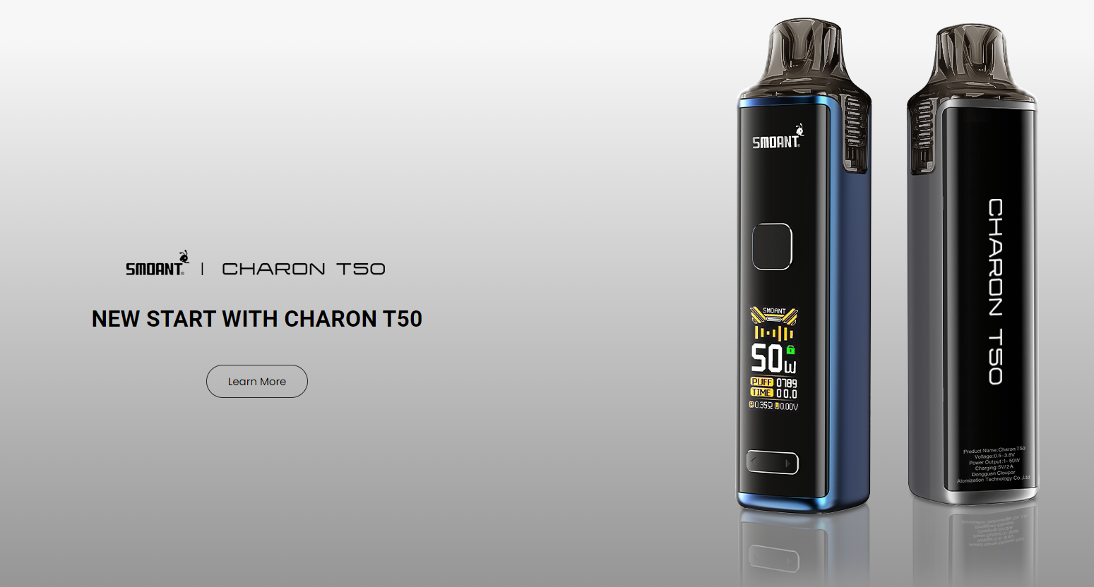 The Charon T50 from Smoant combines durability with advanced technology. It features a 1500mAh battery and supports a maximum output of 50W. The device includes a new UI design on a 0.96″ TFT screen, offering customizable backgrounds and essential vaping information at a glance.