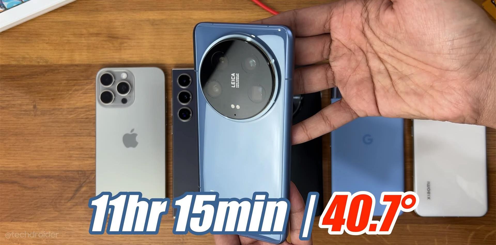 The Mi 14Ultra has a battery life of 11 hours and 15 minutes, ranking second.