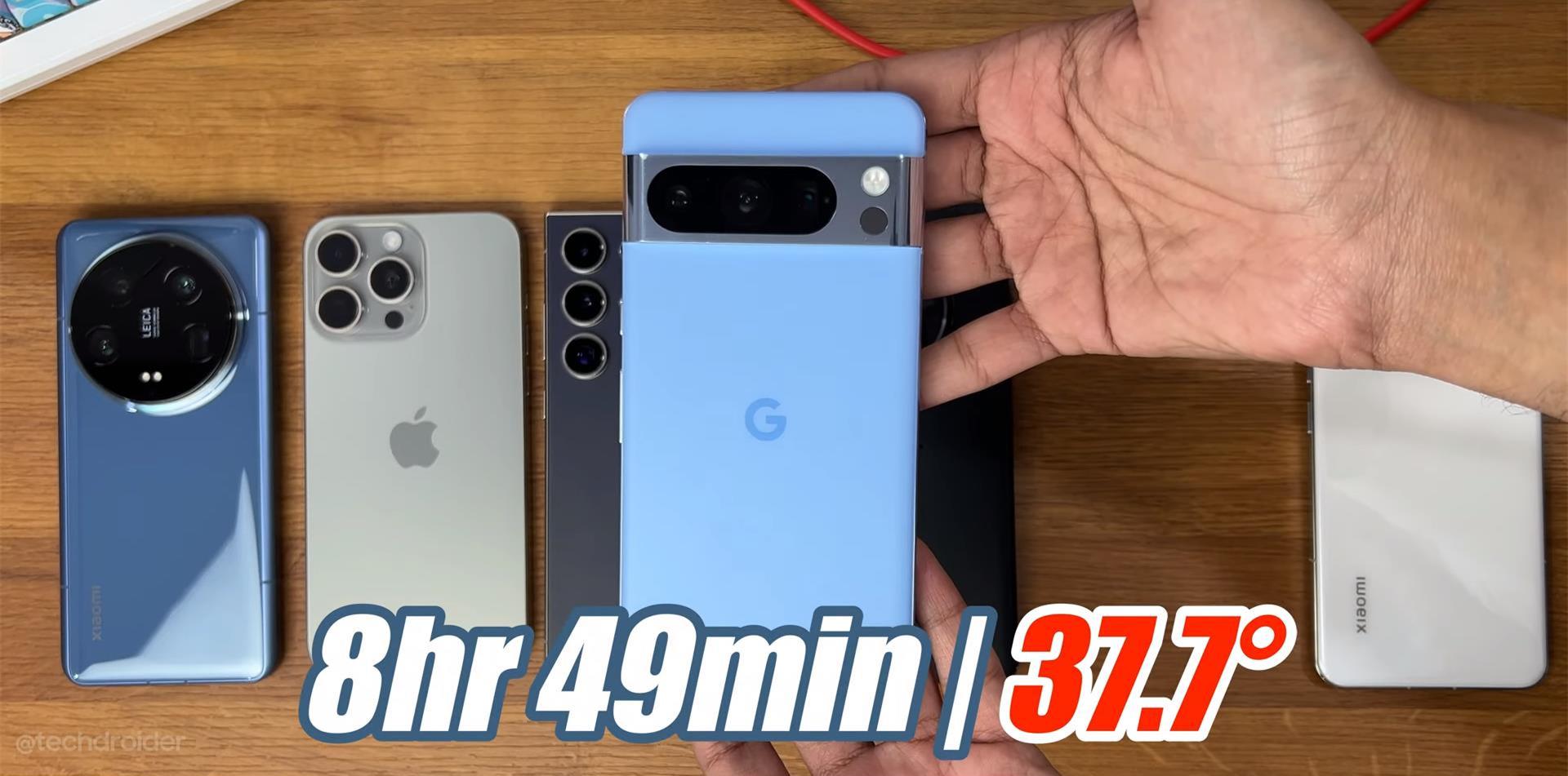 The Google Pixel8Pro has a battery life of 8 hours and 49 minutes, ranking sixth.