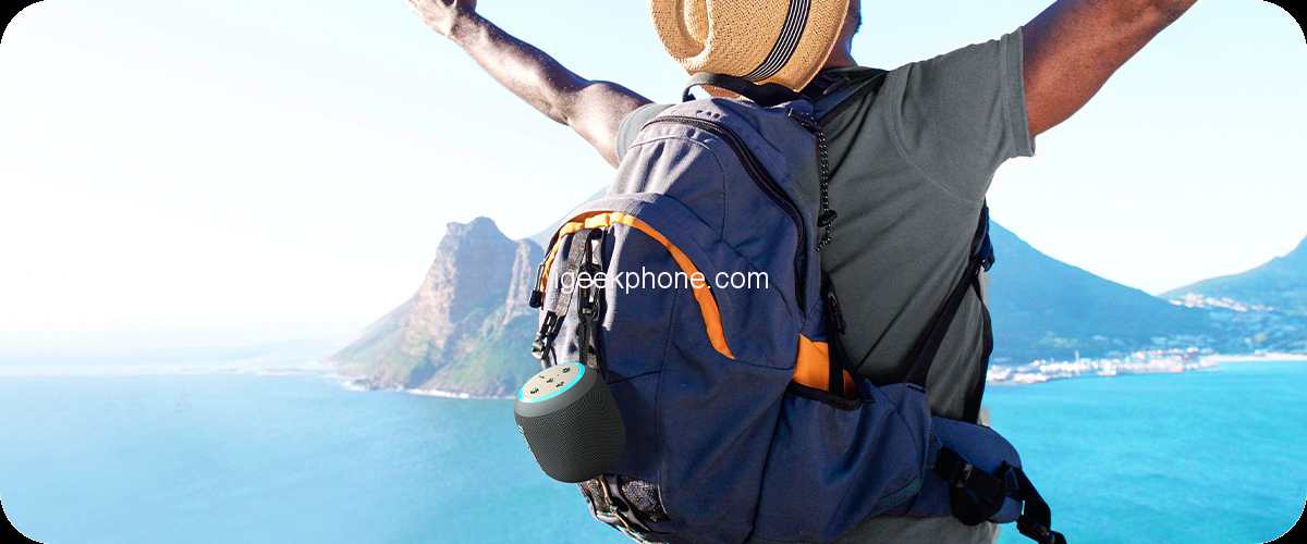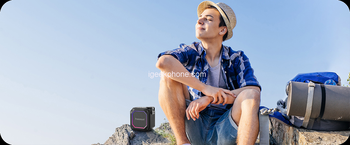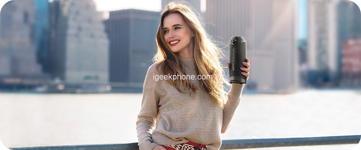 Tew portable speaker, the long-awaited successor to the legendary T-series – Tronsmart T7. Tronsmart added an IPX7 water resistance rating and customizable backlight. The cylindrical shape of T7 not only looks cool and is convenient to use, but also helps to create 360° surround sound. Powerful woofers on the bottom work together with two combined tweeters at the top for a power output of 30W controlled via Tronsmart patented SoundPulse audio technology. And last but not least, the T7 speaker provides a better connection than ever thanks to Bluetooth 5.3, which facilitates the wireless signal transmission over up to 18 meters and improves energy efficiency while streaming audio.