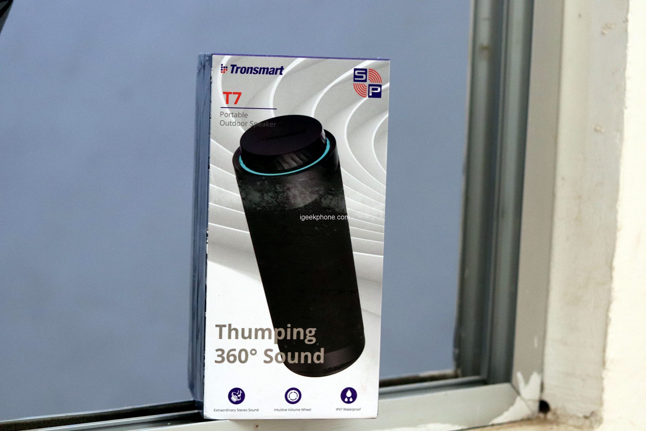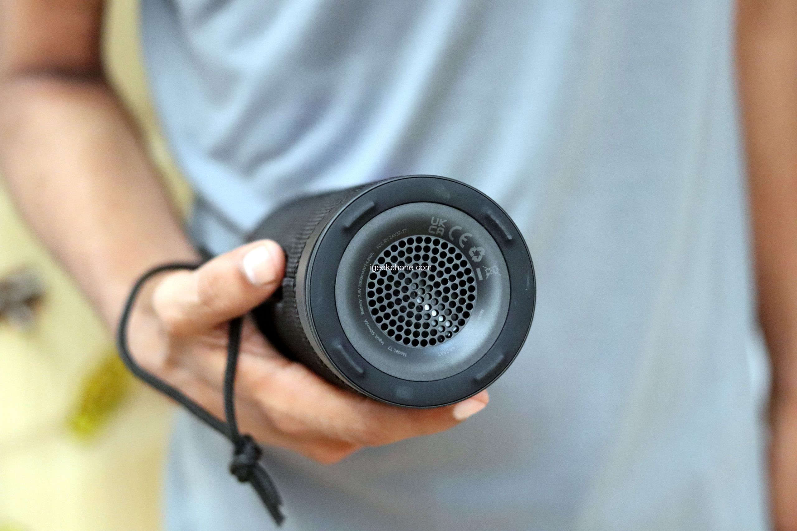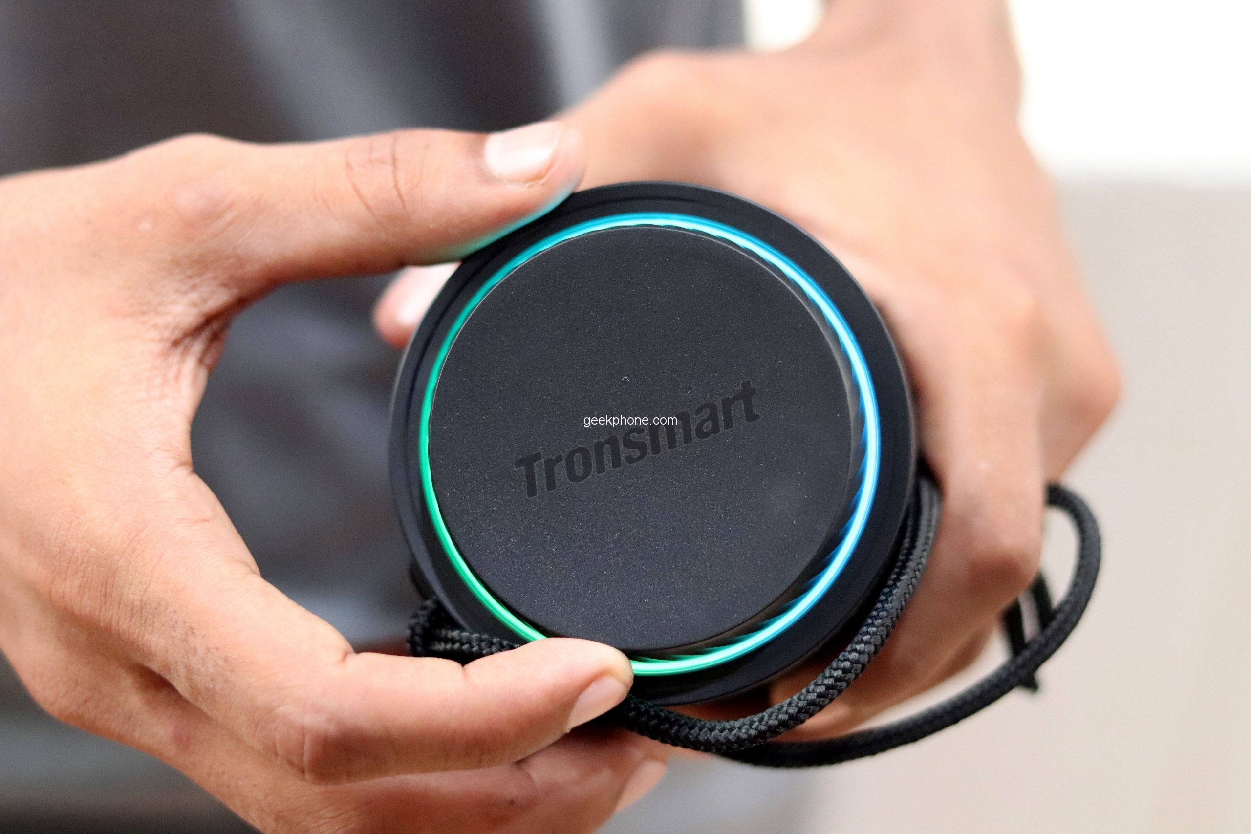 The multicolored LED lighting is also new. It can blow several colors into the ring at the same time, adapt to the music, or imitate “breathing,” also known in gaming circles. A nice gimmick that breathes a little life into the Tronsmart T7 but also literally absorbs it. However, we explain what it is in the battery life section. Strong: Thanks to IPX7, the speaker is protected against water ingress! It would help if you didn’t submerge it, but it should withstand a heavy downpour without any problems.