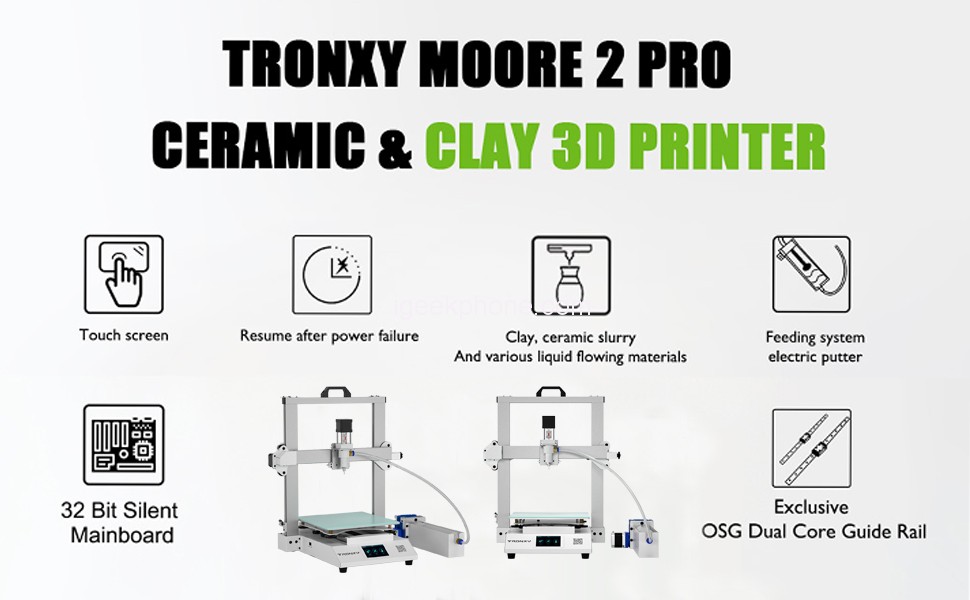 The TRONXY Moore 2 Pro is a highly efficient ceramic clay 3D printer that combines precision and affordability. With its advanced features and user-friendly interface, it offers a seamless printing experience for both professionals and enthusiasts. The printer boasts a sturdy construction and a large build volume, allowing users to create intricate ceramic clay models with ease. With the Moore 2 Pro, you can unleash your creativity and bring your artistic visions to life. Don’t miss out on this incredible opportunity to purchase the Moore 2 Pro at the lowest price available, exclusively from CAFAGO.