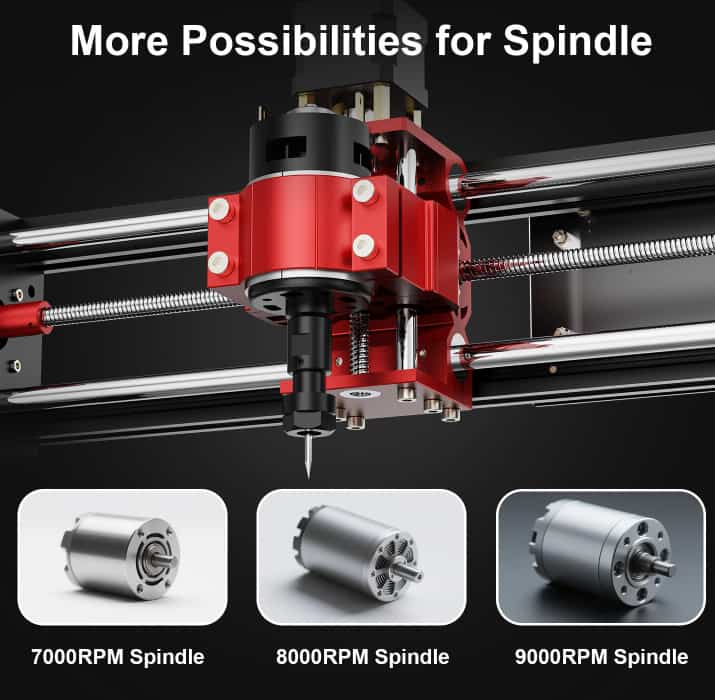 Laser Module Compatibility: Swap the spindle for a laser (sold separately) to engrave leather, paper, or fabric.