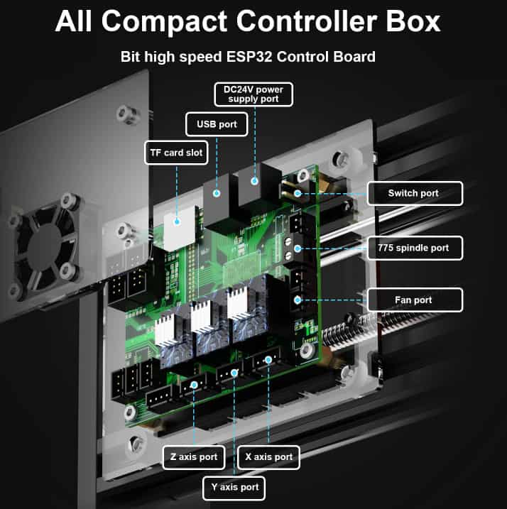 Water-Cooling Ready: Supports aftermarket water-cooled spindles for marathon engraving sessions.